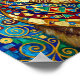 Grumpy cat in the style of Gustav Klimt, with a colorful scarf and geometric patterns in the background.