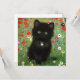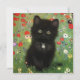 Card featuring a Gustav Klimt kitten! This black kitty wears a silver collar and sits in a field of red, blue, white, and yellow flowers. A wonderful gift for cat lovers and Austrian art enthusiasts!