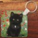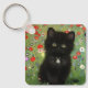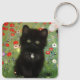 Keychain featuring a Gustav Klimt kitten! This black kitty wears a silver collar and sits in a field of red, blue, white, and yellow flowers. A wonderful gift for cat lovers and Austrian art enthusiasts!