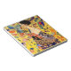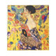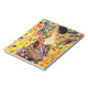 Notepad featuring Gustav Klimt’s oil painting Lady with Fan (1918). A woman wearing a blue kimono holds a red fan against a colorful yellow background of flowers and peacocks. A great gift for fans of Japonisme and European art.
