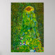 Gustav Klimt The Sunflower poster. Oil painting on canvas from 1907. Austrian artist Gustav Klimt is most recognized for the portrait work he completed during his golden period, however he also painted some beautiful garden and landscape paintings. Sunflower is arguably his most famous flower painting. A large sunflower bends towards a green field full of other colourful flowers under the weight of its heavy blossom. A great gift for fans of Gustav Klimt, sunflowers, Austrian symbolism, and art nouveau.