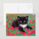Postcard featuring a Gustav Klimt tuxedo cat! This adorable black and white kitty sits in a field of red, blue, white, and orange flowers. An awesome gift for cat lovers and Austrian art enthusiasts!