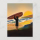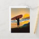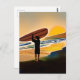 Guy on Beach with Surf Board at Sunset Postcard