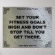 The exercise quote reads: SET YOUR FITNESS GOALS HIGH AND DON'T STOP TILL YOU GET THERE. ~ Felicity Luckey