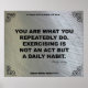 The exercise quote reads: YOU ARE WHAT YOU REPEATEDLY DO. EXERCISING IS NOT AN ACT BUT A DAILY HABIT. ~ Felicity Luckey