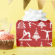 Fun gymnastics themed Christmas wrapping paper with a festive red background and alternating Christmas trees and gymnast silhouettes! Make the holidays more fun for your gymnast!
