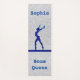 Gymnastics Beam Queen Custom Yoga Mat in silver and blue - One side of this design has the faux sparkle w/ gymnast on balance beam silhouette along with the name of your choice at the top and the gymnastics quote "beam queen" on the bottom. Flip this over and on the backside you'll see it says "gymnastics" in vertical form.