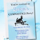 This amazing gymnastics party invitation is sure to grab the attention of all invitees. Completely customizable with her name in a bold script font and all your party details down below!