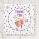 Flip, Tumble and Play! Gymnastics birthday party thank you favour tags in pink, purple and turquoise.