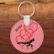 Gymnastics button keychain with gymnast & red hearts. Personalized name.