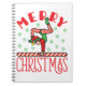 Christmas holiday design for gymnastics lover features a gymnast elf on a candy cane beam