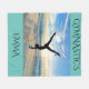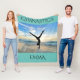 Teal gymnastics fleece blanket with gymnast and personalized name.