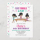 Flip Tumble and Play! Gymnastics birthday party invitation in pink, purple and turquoise.