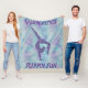 "'GYMNASTICS" FLEECE BLANKET WITH GYMNAST "FLIPPIN FUN" LOGO IN PURPLE & BLUE.