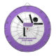 Gymnastics gifts, gymnastics performer custom dart boardj a minimalist black icon of a gymnast wearing a purple leotard with a purple border around. Personalize it and change text with monogram, name or your message. The perfect gift ideas for the gymnastics athlete, lover or those who do it as a hobby.