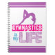 Colourful gymnastics notebook with the text, "Gymnastics is my Life". It has a gymnast silhouette that appears to use the word "Gymnastics" as a beam. You can change the background colour by using the "customize it" button. (LIGHT COLORS work best)