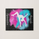 Gymnastics Leap Pink Blue Colour Bomb with Name Jigsaw Puzzle