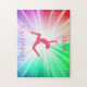 Beautiful lights coloured puzzle with gymnast in purple. Personalized name.