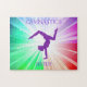 Beautiful lights coloured puzzle with gymnast in purple. Personalized name.