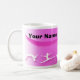 Gymnastics full wrap design on this mug is in purples and pinks. Add your name easily to this mug or add your child/grandchild and give it as a unique gift!