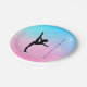 Gymnastics Pastel Pink and Blue Paper Plates with a hint of teal and font in deep purple - Great to use for any occasion such as birthday parties, gymnastics meets, fundraisers or any other special event. Keep as shown with the word gymnastics or customize with the name of you gymnast!