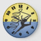 In gymnastics the ribbon on the floor is a great act to do. This design is a gymnastics floor routine. The gymnast is on the floor in a jump with the ribbon in a nice swirling pattern. This gymnastics ribbon routine looks great on this clock. Perfect for yourself or as a gift