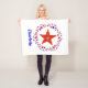 All-American gymnastics theme, red white and blue blanket- Red and blue stars circle a faux sequins, red star with a tumbling gymnast pose in the centre. Add personalized name at bottom in matching blue script. Pretty, personalized girls gift for aspiring, athletic Olympics gymnast champions. Identical on back. Stars blanket matches red, white and blue decor, gymnastics theme, or stars theme. Matching gymnasts pillow, as well as more gymnastics decor and personalized pillow designs are in our Zazzle.com/angela65* shop. Add any custom text you wish.
