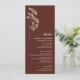Dark red beet colour menu with off white text and illustration of gypsophila at left.
