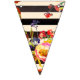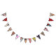 This artsy bunting flag, features 16 different patterns and collages, in various colours and styles. Floral patterns, stripes, leopard print, geometric designs all work together to create a gypsy, bohemian style flag. Colours used, but not limited to, red, pink, black, white, navy, green, salmon, coral, peach, gold, and many others. Perfect to hang inside or out, for everyday use. Great for dorms, patios, or caravans.