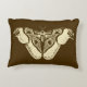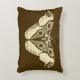 Accent pillow in a digital sketch of a Gypsy moth, adapted from a vintage illustration, in beige on a dark chocolate brown background