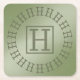 This is an H Monogram Light Green Gradient Coaster. The coaster design was created with generative art. The art features a capital letter H in a box in the centre with a circle of smaller H's around it. The background is a light green gradient. The coaster is in a set of 6 pulp board coasters.