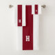 H monogramme sur ensemble de serviettes rayées blanc et pourpre.