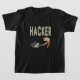 Hacker design features large wording above cool graphic of a hacker breaking into a computer system to establish the truth behind the green screen graphics. For hackers, coders and cyber criminals who need to dive deep.