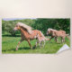 Haflinger Horses with Cute Foals Run Funny Photo _ Beach Towel