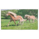 Haflinger mare with frisky foals running together across a pasture in a beautifull landscape. A blonde flaxen chestnut horse breed, also called haffies or avelignese, photo taken by Katho Menden. This pillowcase is a gift idea for horse lovers