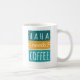 Haha Needs Coffee Mug. This cute coffee mug makes the perfect gift for any mother whose children call her Haha instead of Mom. (Haha means mother or mom in Japanese.) This funny coffee mug says "Haha needs coffee." It has a white background with teal / turquoise / aqua and yellow graphics.