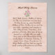 This christian poster has elegant pink roses and the catholic prayer Hail Holy Queen (the English translation of the Latin Salve Regina): Hail, Holy Queen, Mother of Mercy, our life, our sweetness and our hope. To thee do we cry, poor banished children of Eve. To thee do we send up our sighs, mourning and weeping in this valley of tears. Turn then, most gracious advocate, thine eyes of mercy toward us, and after this our exile, show unto us the blessed fruit of thy womb, Jesus. O clement, O loving, O sweet Virgin Mary. Pray for us, O Holy Mother of God, that we may be made worthy of the promises of Christ. Amen