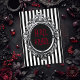 Hail Santa Christmas Card. © Dark Heart Desires. This Gothic Christmas Card has black and white stripes on it with a silvery white frame in the centre and in the frame the words Hail Santa in deep red. The card is blank inside to allow you to write your own message.