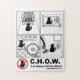 C.H.O.W. Haineux de chat de la conception de bande dessinée de panneau du classique 4 du monde des bandes dessinées de l'original 1987. Illustrations drôles montrant le chat s'entrant dans le problème. Grands cadeaux pour des haineux de chat, avec le logo du fonctionnaire C.H.O.W. au-dessous des bandes dessinées.