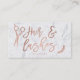 A modern, stylish hair and lashes artist business card with modern hand lettering style script cursive typography in faux rose gold foil on a trendy and elegant white marble background. If you need any customization, don't hesitate in contacting me wih eyelashes and scissors.