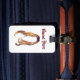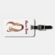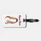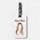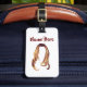 Blonde, brown hair art, custom background colour and custom text luggage tag.