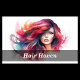 A watercolor of a beautiful woman with coloured hair. This is a business card that can be used by hair stylists, colorists, beauty salons, boutiques, etc.