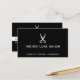 A professional appointment card for a hair salon, hair stylist or hairdresser. Featuring the salon name and main services on the front of the card. And the appointment date, time, cancellation policy and contact details on the back. A modern, simple and minimalist design with a scissors graphic. This appointment card is in a black colorway. The text templates can be easily personalized.