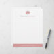 Customizable hair stylist / hair studio / beauty salon business letterhead template with hair comb and scissors logo on pink and grey.