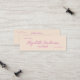 This off-white mini business card has a line of pink handwritten-style script for your name on the front. Additional text for your title is available below the script. The back also has four lines of display text for your salon name, address, and phone number. All text can be edited or deleted.