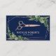 Hair Stylist Rose Gold Geometric Greenery Navy Business Card