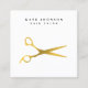 A minimalist black and gold hair stylist scissors design showcasing your own QR code, social media handle and text. This elegant business card is ideal for all types of hair stylists, barbers, hairdressers etc. A simple and professional way to promote your business. Personalize your details to create your own unique business card.