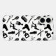 Cute iPhone case for a hair stylist, hair dresser, hair salon owner, or barber with a pattern in black and white of the silhouettes of the tools of their trade.