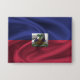 Button with the flag of Haiti in wavy fabric style design. This design features the Haitian flag colours and design with a beautiful waving material textured effect. This flag design is a great way to show you are proud to be from Haiti.
