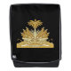 Design with coat of arms of Republic of Haiti on black background, golden design